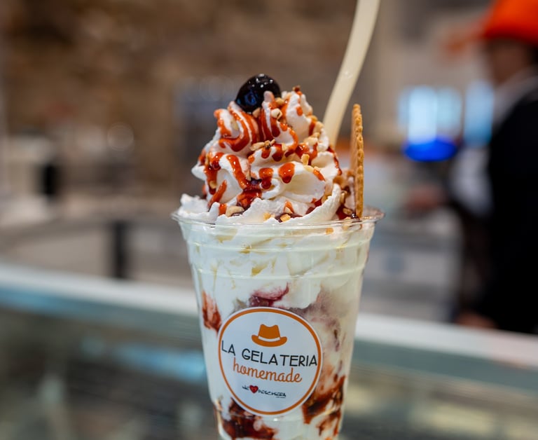 Un ambiente accogliente dove gustare il gelato in compagnia, passeggiando per le vie del centro storico di Peschiera del Garda tra le sue mura patrimonio Unesco